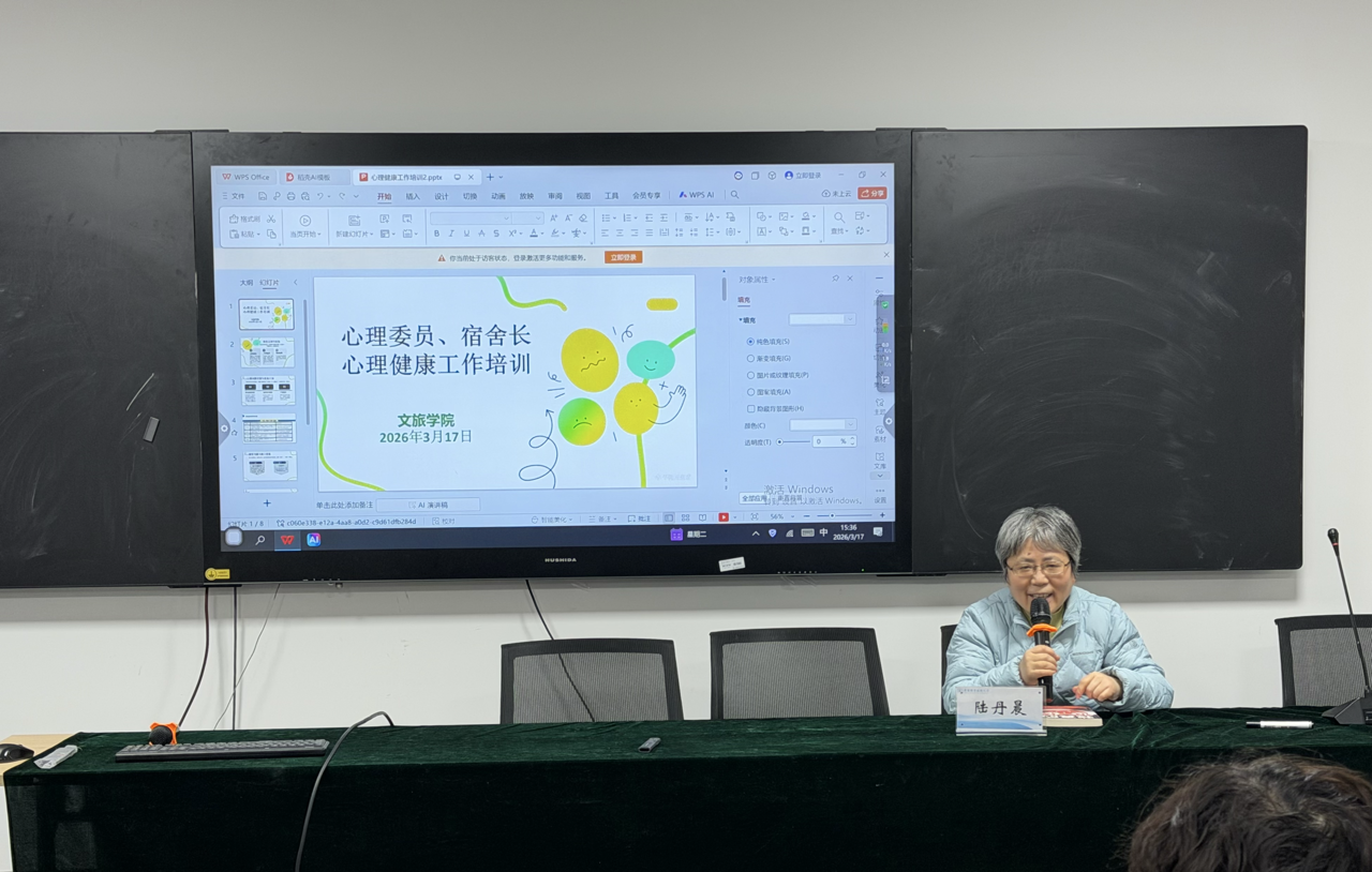 为进一步加强文旅学院一站式学生社区心理健康教育队伍建设,提升心理委员、宿舍长的专业素养与工作能力,充分发挥学生骨干在心理健康工作中的“前沿哨兵”作用,文旅学院组织开展一站式学生社区心理健康工作专题培训。