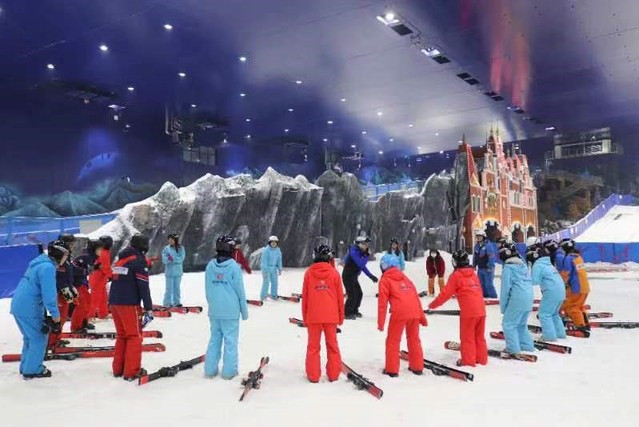 本次活动主要在融创乐园热血奇迹滑雪区举行。活动开始之前,师生们在企业导师的引领下,按照流程依次换上了滑雪服、滑雪靴、防护头盔、防冻手套、滑雪板等全套滑雪装备,认真聆听着滑雪教练的课前安全注意事项教学。