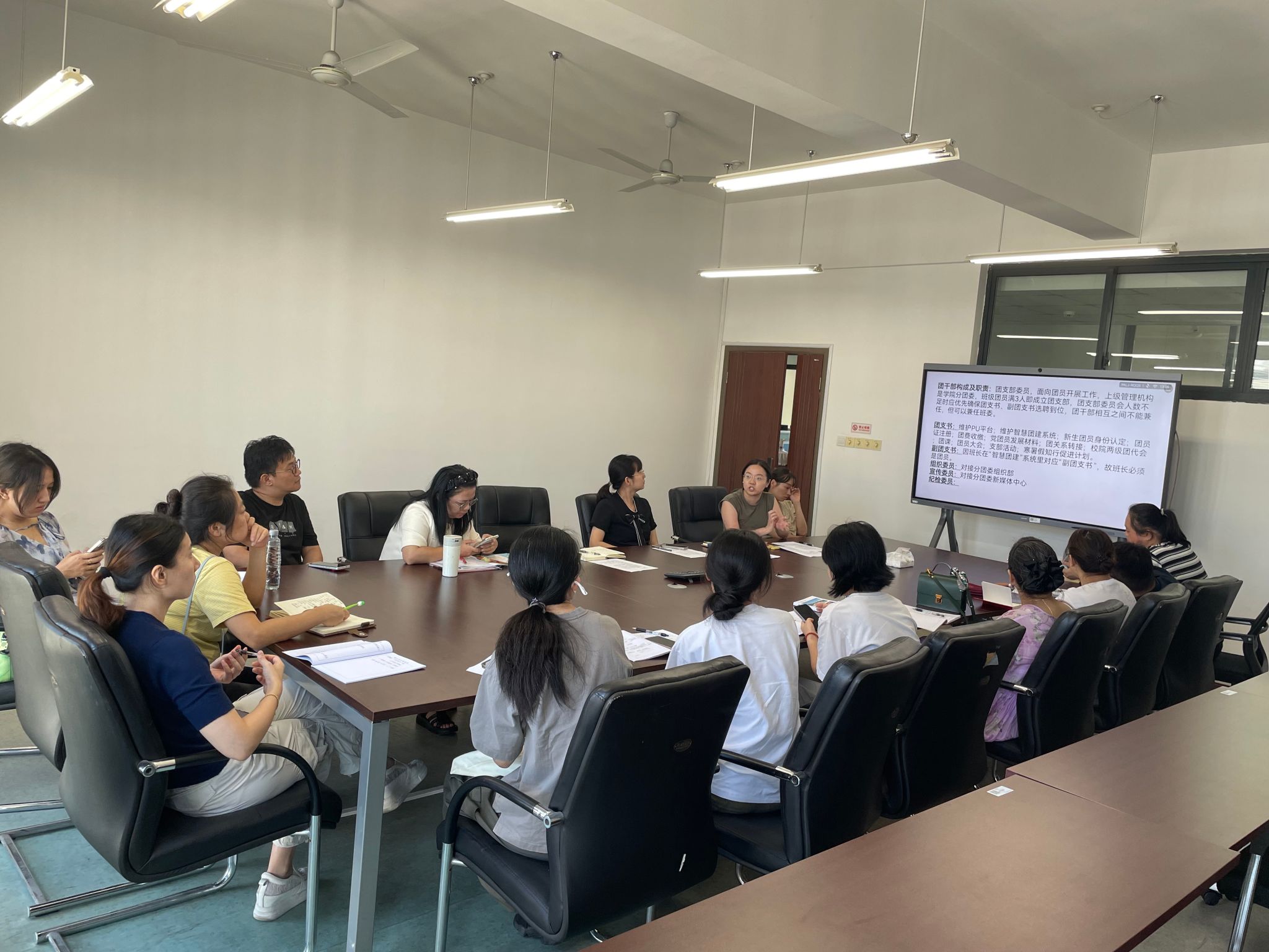 最后,陈明媛为班主任作了班团干部选聘专题培训,详细解读了班干部与团干部的区别、职责及聘任要求,针对班主任提出的问题作出了详细解答。文旅学院将继续开展班主任能力提升系列培训,形成“管理—服务—育人”一体化模式,真正把学生社区打造成思想引领、学业帮扶、生活服务、文化育人的重要阵地。