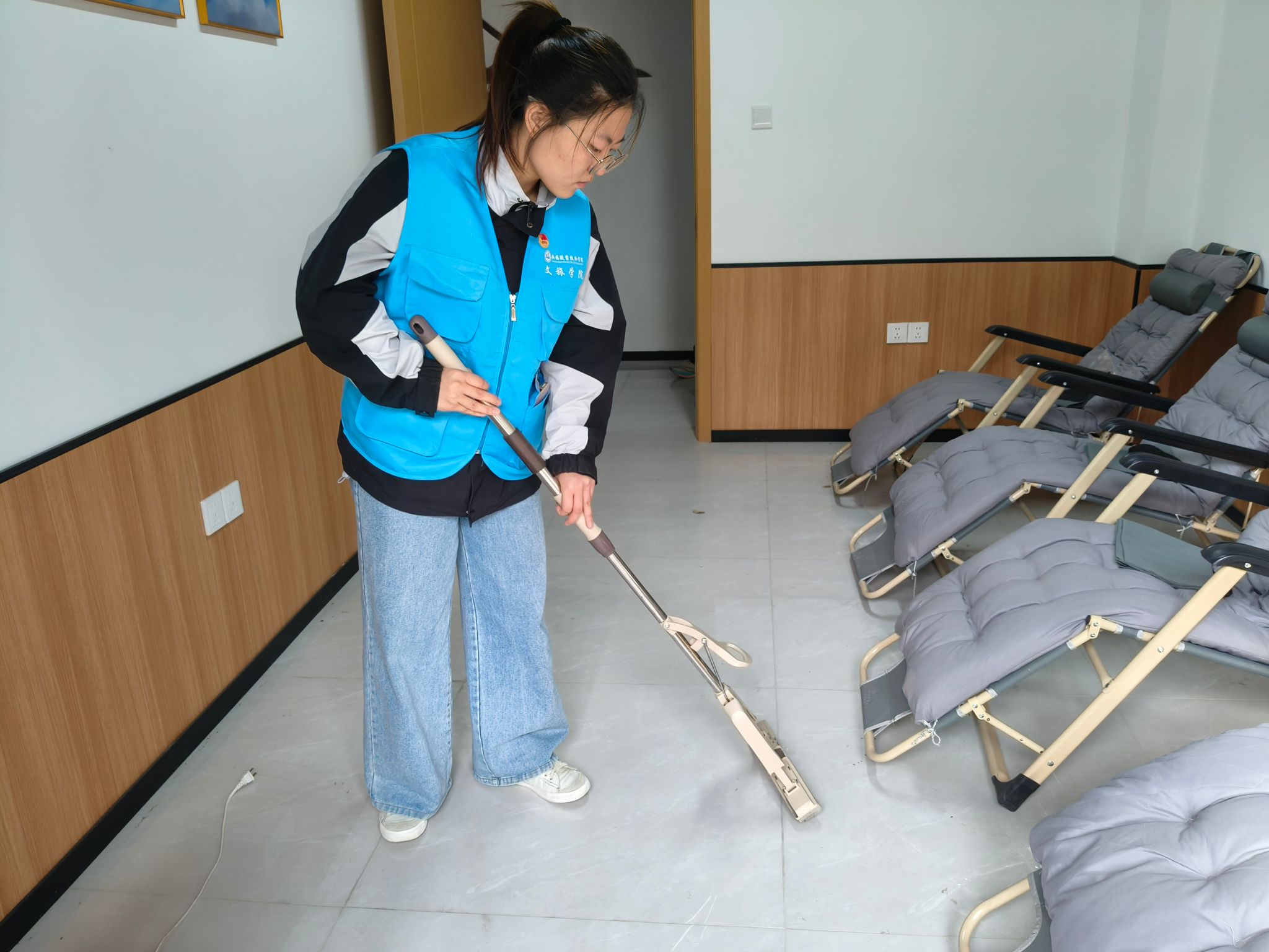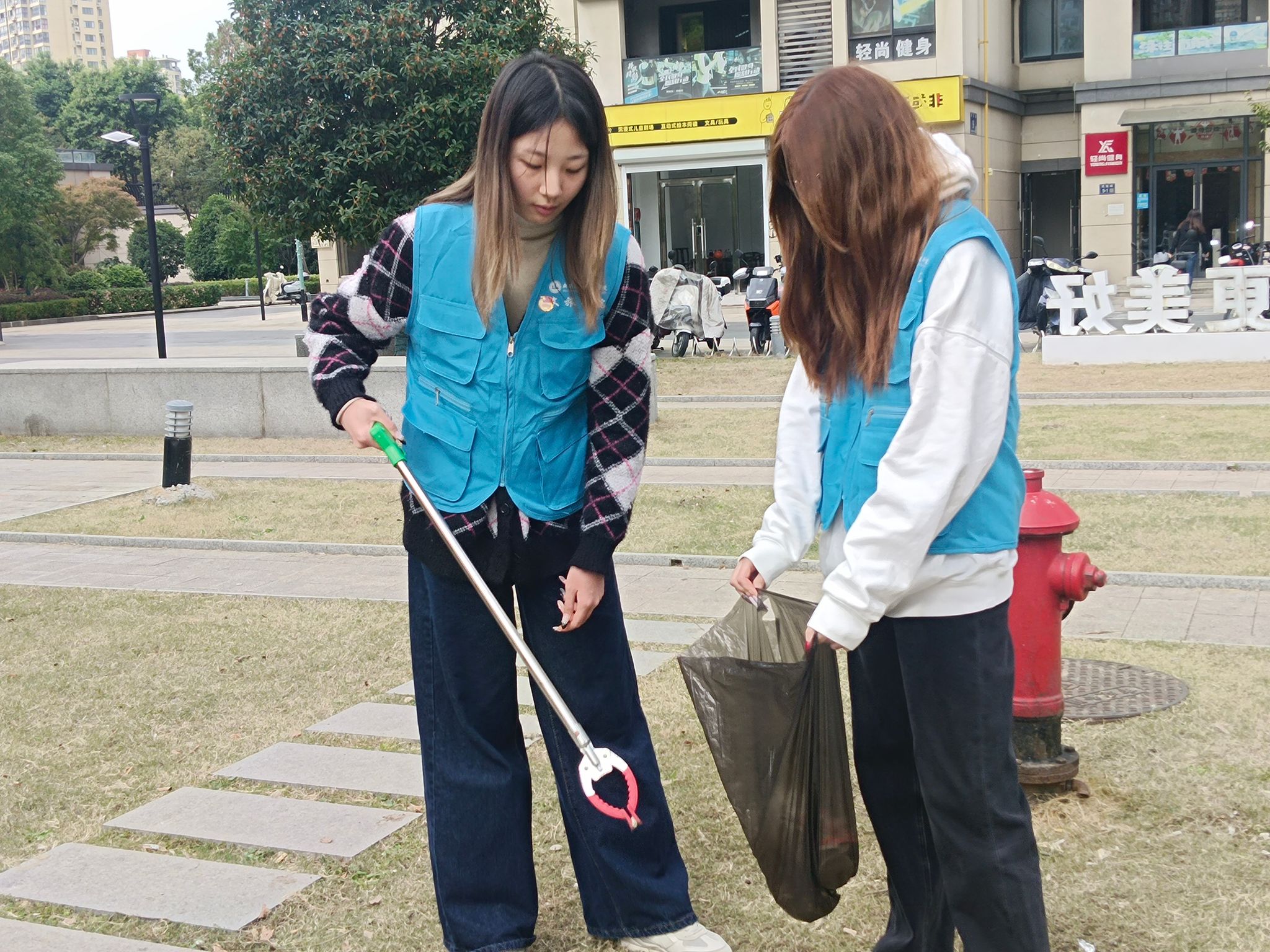 此次活动分为 “环境清理”“分类宣传”“设施维护” 三大板块,志愿者们分工协作、高效联动。在垃圾清理环节,大家手持夹子、垃圾袋,对社区道路旁、绿化带内的塑料瓶、果皮、烟头、废旧纸张等垃圾进行 “地毯式” 清理,重点清理了墙角、楼梯间等卫生死角,共清理各类垃圾 5袋,重量约2公斤;在设施清洁环节,另一组志愿者带着抹布、清洁剂,对社区老年活动中心表面的灰尘、污渍进行擦拭,原本的活动中心变得干净整洁,方便居民使用;在垃圾分类宣传环节,同学们化身 “环保小讲师”,通过发放图文手册、现场演示分类方法、解答居民疑问等方式,讲解 “可回收物、厨余垃圾、有害垃圾、其他垃圾” 的分类标准,还针对居民常见的 “废旧电池怎么处理”“外卖餐盒如何分类” 等问题进行耐心解答。
