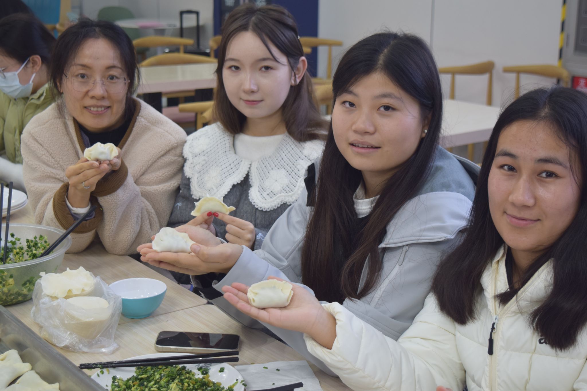 师生展示包饺子成果