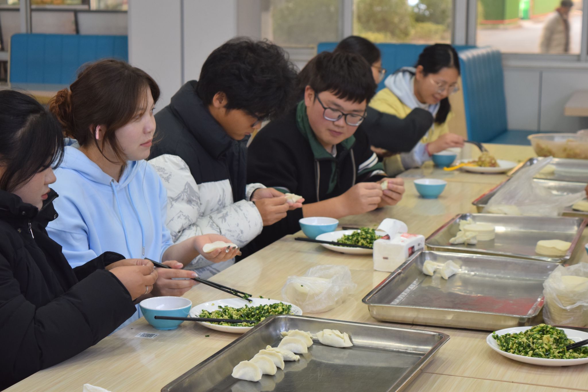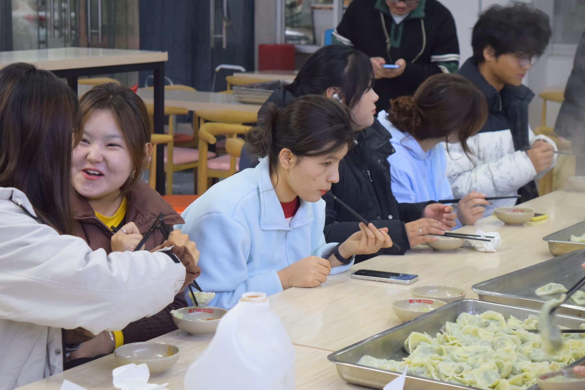 在大家的通力合作下,热气腾腾的饺子很快出锅装盘了,一碗碗形态各异却鲜香四溢的饺子端到面前,师生们迫不及待地品尝起自己的劳动成果。大家边吃边聊,分享着包饺子的乐趣和品尝美味的喜悦,现场氛围温馨而热烈。