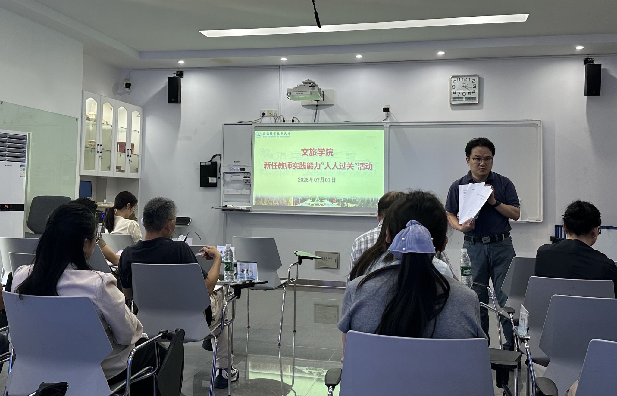 为全面提升新任教师实践教学水平,夯实学院实践教学质量根基,7月1日,文旅学院举办新任教师实践教学能力 “人人过关” 活动。学院院长冯臻、副院长叶设玲亲临现场全程指导,质控部钟建刚、教务处蒋超慧,文旅学院教师梁峰、李娟梅、陈曦组成专业评审团,为活动严格把关。