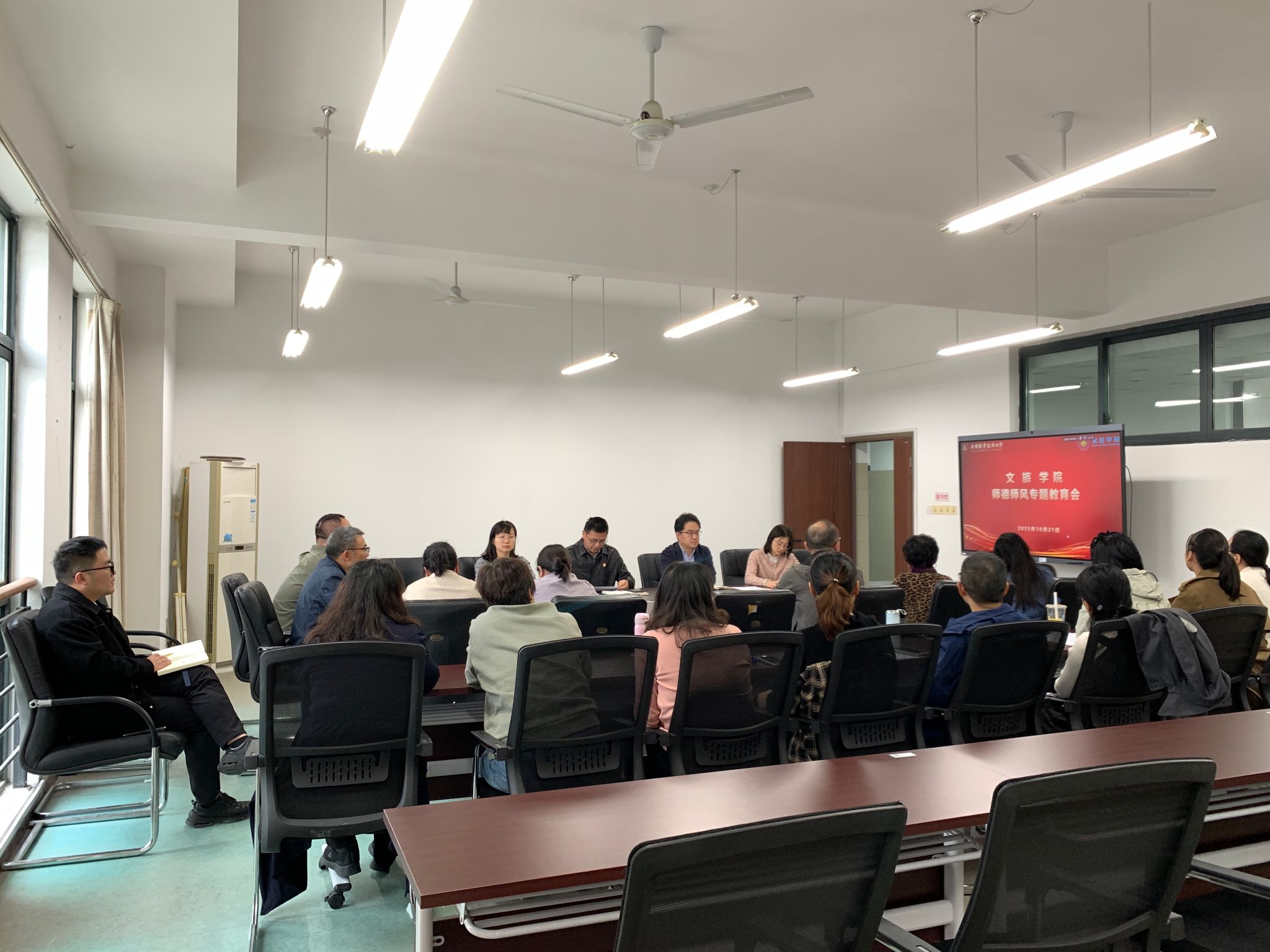 10月21日下午,文旅学院在国教604召开2025年下学期师德师风专题教育会。会议由学院党总支书记吴乃鑫主持,全体教职工参加会议。