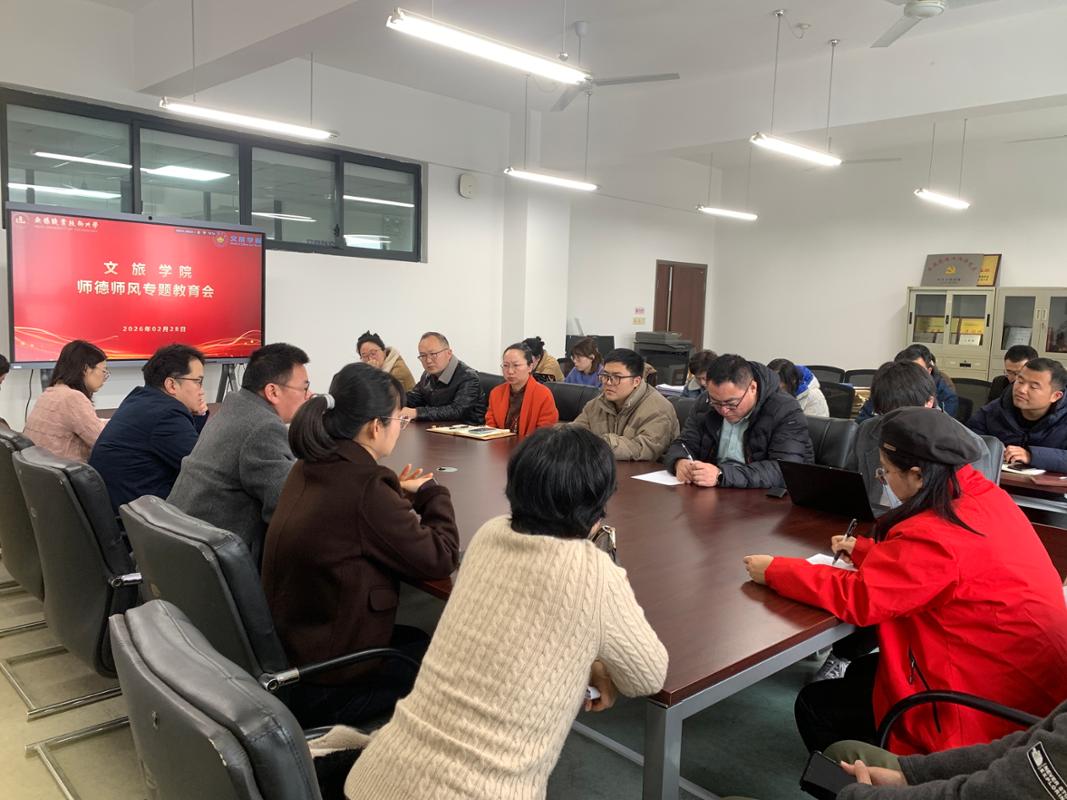 2月28日上午,文旅学院在GJ-604会议室召开新学期师德师风专题教育会。全体教职工参会,会议由学院党总支书记吴乃鑫主持。