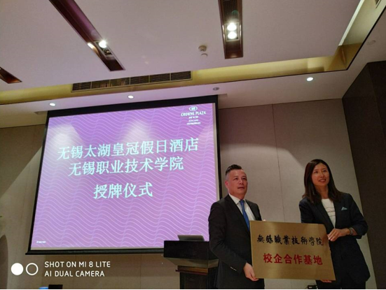 11月2日下午,我院杨丽院长、梁峰副院长、旅游系许刚主任、李娟梅老师、颜佶琰老师一行五人,前往无锡太湖皇冠假日酒店参加由该酒店与我院共同举行的无锡职业技术学院校企合作基地授牌仪式,并看望了在酒店实习的我院16级酒店管理专业学生。