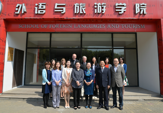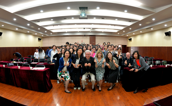 4月18日上午,美国万礼豪程项目总监董佳、首席资深学术顾问圣地亚哥州立大学教授Gene Lamke(杜靖德)、项目传讯总监兼教学顾问Linda Roundtree(袁诗琳)等一行6人来我院交流访问。