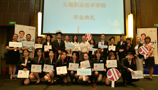 5月16日下午,我院与无锡富力喜来登酒店联合开展的首届“现代学徒制”人才培养项目——“喜来登班”毕业典礼在酒店方三楼会议厅隆重举行。我院江铭书记、杨丽院长、部分教师代表、酒店方人力资源部总监马琳琳、餐饮总监sergio等领导以及“喜来登班”17名同学参加了毕业典礼。