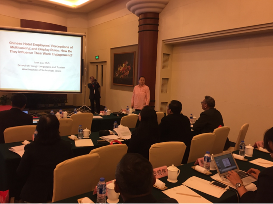 1017日至18日,由印尼旅游与酒店管理专业高校联盟、无锡市国际教育交流合作协会主办,我校承办的第四届旅游与酒店管理国际学术研讨会在无锡君来湖滨饭店隆重举行。这次会议吸引了来自印尼、马来西亚、瑞士及中国的近200位代表参会。我院酒店管理专业教师刘娟应邀在会上报告了其学术论文“Chinese Hotel Employees’ Perceptions of Multitasking and Display Rules: How Do They Influence Their Work Engagement?”。报告引发了与会代表的兴趣和相关讨论。
